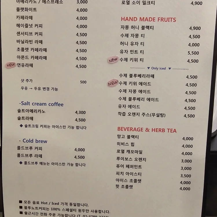 - 다양한 음료: 3,000원 ~ 5,500원