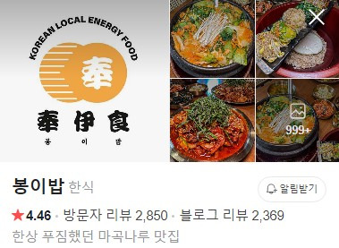- 특징 : 전통 한식과 함께 다양한 반찬이 제공됩니다.