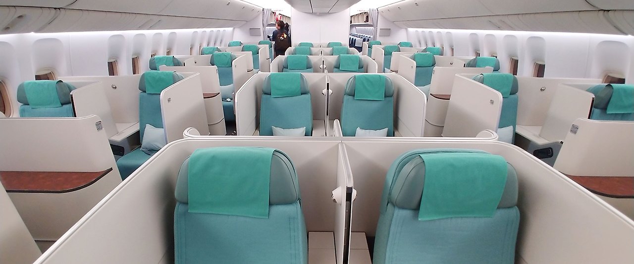 대한항공의 비즈니스석은 한국적인 서비스와 편안함을 제공합니다. 좌석은 넓고, 기내식은 한국의 전통 음식을 포함하여 다양한 선택이 가능합니다.