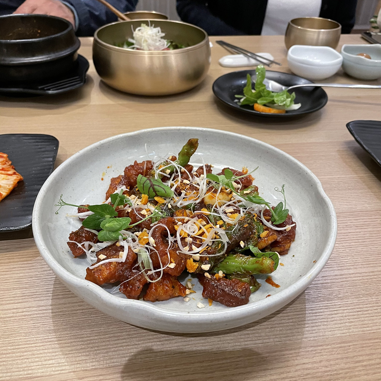 사대부집 곳간은 전통 한식을 즐길 수 있는 곳으로, 아늑한 분위기에서 가족과 함께 식사하기 좋습니다. 이곳은 특히 정갈한 반찬과 함께 나오는 메인 요리가 인상적이에요.